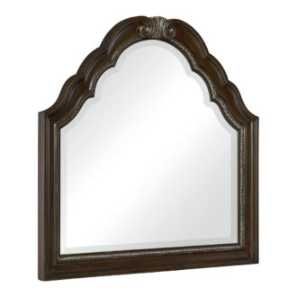 The traditional profile of the Beddington Collection pairs classic accent with elegant highlight to create a timeless look for your bedroom. Stylized decorative molding defines the traditional profile of the mirror’s frame. Primavera and ash burl veneer are finished in dark cherry for elegant enhancement of the wood’s grain.