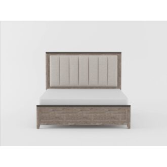 The Newell Collection’s subtle rustic aesthetic and transitional style pairs effortlessly with your desire to refresh your bedroom’s current look. The design of the queen bed features recessed picture frame molding and a two-tone gray and oak finish over oak veneer. Further accent comes in the form of the bed’s light brown textured fabric vertical padded headboard insert.