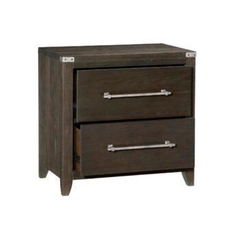 The Bellamy Collection’s intersection of modern lines and transitional appointments makes for a versatile pairing to your bedroom’s décor. The nightstand’s drawers have elongated bar hardware which provide complement to the dark brown finish of the ash veneer, providing maximum decorative impact while serving as the perfect canvas to let your decorative flourish reign.