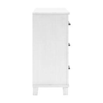 With a design that looks like it was pulled out of a country cottage, the Laurelville Collection is a timeless addition to your bedroom’s décor. An antique white rub-through finish is utilized to create an airy aesthetic to the transitional lines that define the dresser’s profile while black-finished metal bar hardware provides complementing contrast the collection’s finish.