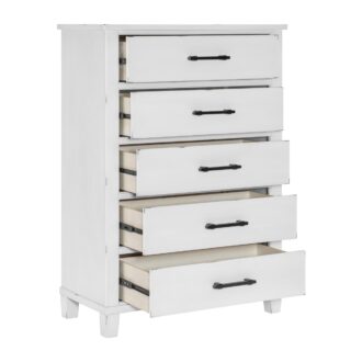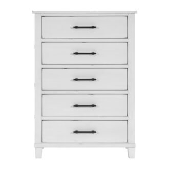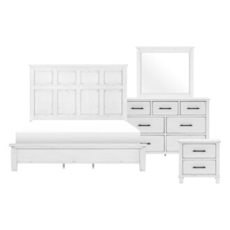 With a design that looks like it was pulled out of a country cottage, the Laurelville Collection is a timeless addition to your bedroom’s décor. An antique white rub-through finish is utilized to create an airy aesthetic to the transitional lines that define the collection’s profile while black-finished metal bar hardware provides complementing contrast the collection’s finish. The panel headboard of the low-profile bed features picture frame molding completing the transitional look.