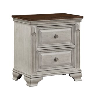 The stately presence of the Marquette Collection is steeped in traditional accenting, culminating in a refined look for your bedroom. The nightstand features frame molding, routed pilasters and a two-tone gray and brown finish over oak veneer. The drawers of the nightstand are accented with antique bronze-finished knob hardware.