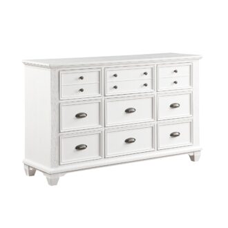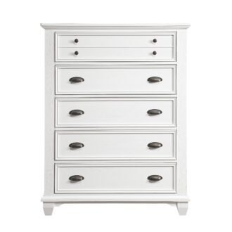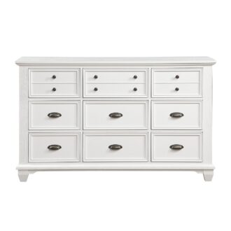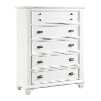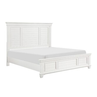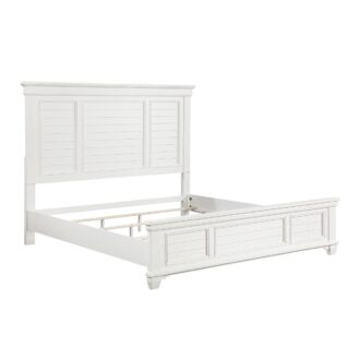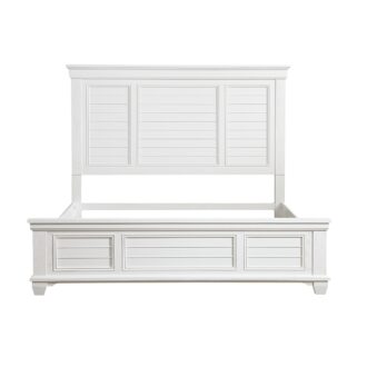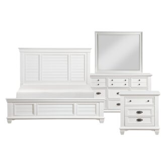 Bringing to mind lazy days at the beach, or peaceful afternoons in the country, the Mackinac Collection’s charming aesthetic pairs to your home’s classic décor. The traditional framing of the collection is covered in a white finish, its bright hue a refreshing addition to your bedroom. Shutter paneling on the bed solidifies the transitional style, lending charming accent to your space. The knob and cup pull hardware of the dresser, nightstand, and chest feature an antique brass finish, providing complementing contrast to the white finish of the collection.