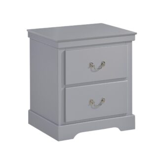 Merging traditional and transitional design creates the look of the Seabright collection, providing a unique platform from which to style your bedroom. The gray painted finish allows for excellent versatility of placement and decorative inspiration. The traditional styling of the satin nickel bale and pull hardware complements the nightstand lending to the classic profile.