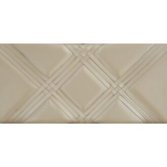 Dramatic from every angle, the Bijou Collection presents as a glamorous statement to the décor of your boudoir. The unique profile of the Queen bed features a V-notch design that serves as not only as a focal point, but as inspiration for the woven pattern that fronts each piece of the collection. The back-lit faux leather headboard insert is featured in a champagne tone that perfectly complements the champagne finish of the collection. The mirrored framing of the bed provides subtle reflection and distinct accent. The drawers of the storage footboard are fronted with triangle-shaped polished chrome hardware and distinct geometric framing.