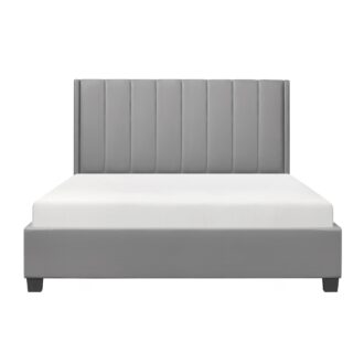 The clean lines of the Anson Collection lend distinct style to the modern look of your bedroom’s décor. The neutral gray faux leather of the upholstered bed allows the perfect palette to decorate your space. The channel-tufted headboard further lends to the modern profile of low-profile platform bed.