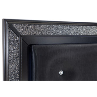 Glamour abounds with the addition of the Salon Collection to your bedroom. The black pearlescent finish is enhanced by the silver glitter trim that frames the bed’s profile. The Queen headboard features a padded faux leather insert that is accented by faux crystal button-tufting and LED-backlighting, that serves as the centerpiece of this sparkling collection.