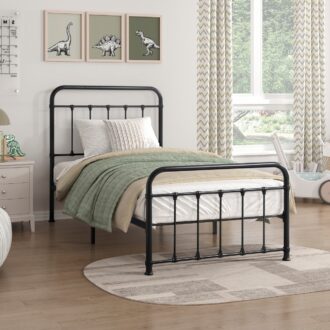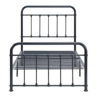 Whether used on an as needed basis in your guest room for company or the perfect addition to your bedroom’s timeless décor, the Fawn Collection is a complement to your home’s sleep space needs. The refined framing that defines the black-finished metal bed features traditional jointed accenting solidifying the classic look. The available queen, full, and twin bed’s construction includes single box packaging along with a platform foundation that allows for the use of a mattress only.