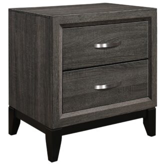 The modern styling of the Davi Collection is achieved by blending the natural look of wood grain and the clean lines of contemporary design to create a unique bedroom group that will fit right in with your home’s aesthetic. The defining lines of the distinct framing of the nightstand effectively accent the printed wood grain on melamine veneer. Coordinating case pieces and bed sizes are also available – dresser, mirror, chest, California King, Eastern King, Queen, Full and Twin.