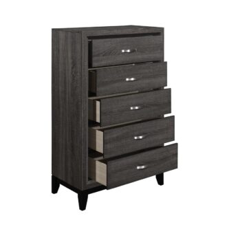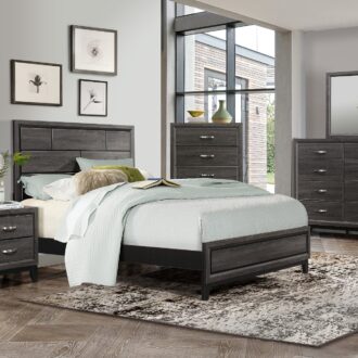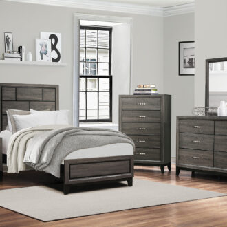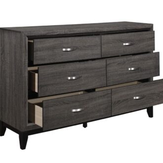 The modern styling of the Davi Collection is achieved by blending the natural look of wood grain and the clean lines of contemporary design to create a unique bedroom group that will fit right in with your home’s aesthetic. The defining lines of the distinct framing of the collection effectively accent the printed wood grain on melamine veneer. Providing complementing contrast are the nickel-finished, metal, fixed drawer pulls.