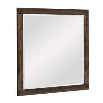 collection. Mounted at the top of each drawer are antiqued finished pull hardware that enhance the rustic vision of this bedroom collection. Bold, yet understated, framing defines the collection’s modern profile.