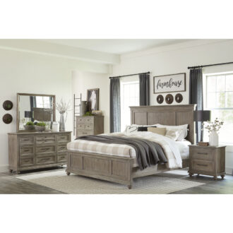 The solid transitional styling of the Cardano Collection creates an impactful design presence in your home. Utilizing distinct accent techniques – plank effect, rasping, saw marks – and pairing them with traditional framing and a light finish – brown wood over acacia veneers – creates a queen bed that is a perfect fit for your bedroom.