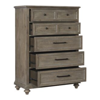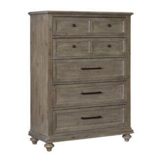The solid transitional styling of the Cardano Collection creates an impactful design presence in your home. Utilizing distinct accent techniques – plank effect, rasping, saw marks – and pairing them with traditional framing and a light finish – brown wood over acacia veneers – creates chest that is a perfect fit for your bedroom. Pewter finished hardware provides a subtle contrast to the wood’s light finish.