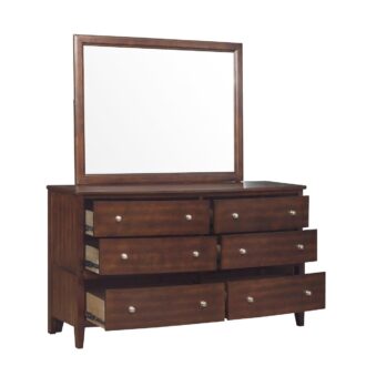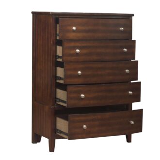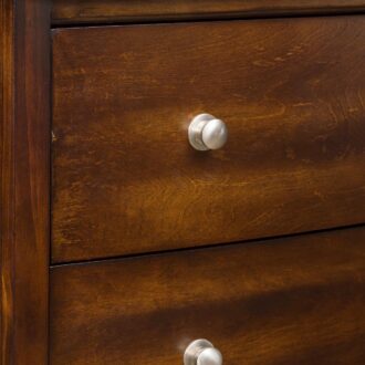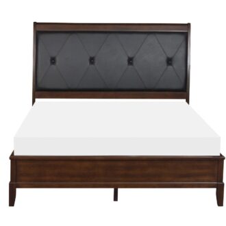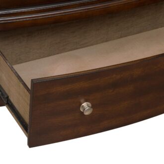With transitional styling that is at home in a number of decorative environments, the Cotterill Collection will be a versatile addition to your bedroom. Cherry finish over birch veneer, dramatically enhance the wood grain and is perfectly accented by the nickel hardware that punctuates each drawer front. Depending on your finish choice the headboard will feature either a black or gray faux leather insert with x-stitching and button-tufting.