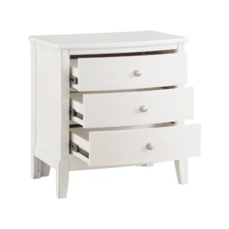 With transitional styling that is at home in a number of decorative environments, the Cotterill Collection will be a versatile addition to your bedroom. The nightstand’s antique white finish, over birch veneer, dramatically enhances the wood’s grain and is perfectly accented by the nickel hardware that punctuates each drawer front.
