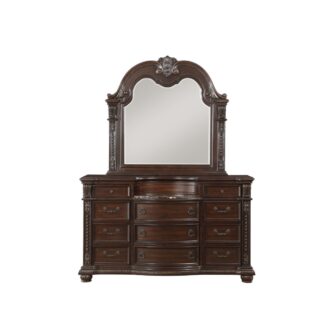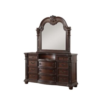 The Cavalier Collection exemplifies the finest in Old World European design inspiration. Egg and dart base moldings, bead molding, and acanthus leaf carvings all blend to achieve an elegant addition for your traditional home. The beautiful detail is accented by the dark cherry finish on birch veneers with gold highlights.