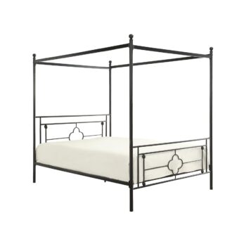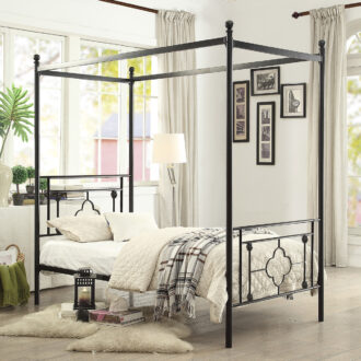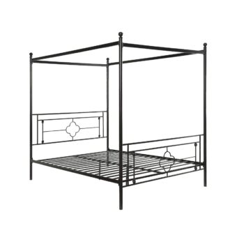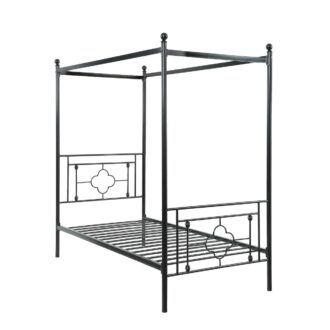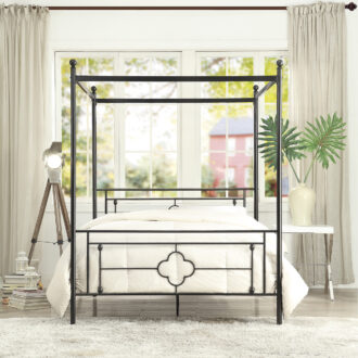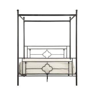 Inspired by vintage design, ball finials top the canopy frame while prominent decorative jointing and classic quatrefoil pattern lend to the modern traditional look of the Hosta Collection. The built-in platform support allows for the use of a mattress without a box spring. The Hosta collection is offered in twin and queen size bed options for versatile placement within your home.