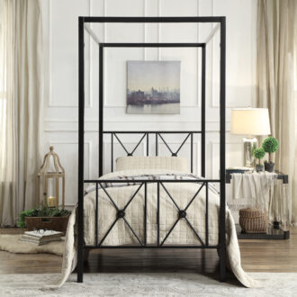 headboard and footboard of the Rapa Collection. Unadorned canopy