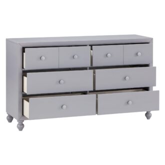 The modern farm house serves as inspiration for the design of the Wellsummer Collection. Offered in white or gray finish for complete decorative versatility in your bedroom, this fresh look will satisfy your love of country styling. Turned feet provide support to all pieces in the collection. Wood knob hardware centers the drawer fronts solidifying the trend forward transitional look.
