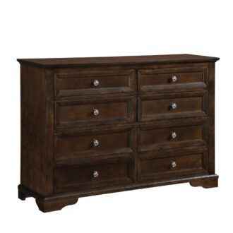 Traditional aesthetic doesn’t always have to be grand in scale or accent to achieve a timeless look. The Eunice Collection takes the form of the traditional dresser and utilizes an espresso finish, understated knob hardware and recessed framing to create a style that can range from transitional to cottage.