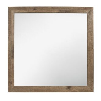 The modern lines of the Mandan Collection are blended with transitional aesthetic to create a unique offering for your bedroom. Utilizing faux wood veneer creates the look of authentic wood planks with the weathered pine finish further lending to the rusticated style. Black finished nickel bar hardware fronts each drawer providing contrasting complement to the nightstand, dresser and mirror.
