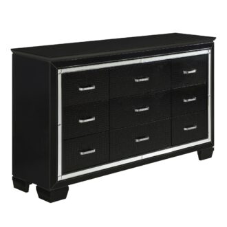 Glamour reigns in the design of the Allura Collection. Alligator embossing and high polished crystal-enhanced hardware boldly accent the black finish of the dresser.