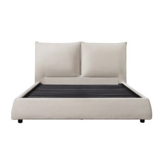 The streamlined design of the Linna Collection creates an elegant profile pairing exquisitely with the modern vision of your bedroom. Beige chenille upholstered fabric covers the entirety of the queen bed’s frame lending a soft touch and neutral accent to your space. Knife-edge tailoring lends to the bed’s unfettered profile while the padded headboard creates a plush accent to the modern look.