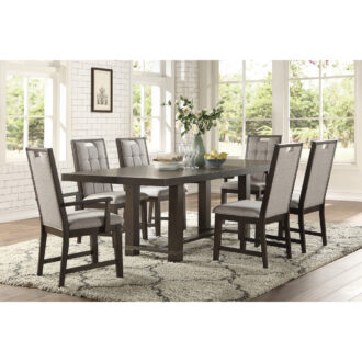The streamlined profile of the Rathdrum will present a modern platform for your mealtime, pairing with the elegant style that defines your home. The trestle table’s top features book-matched oak veneer that is highlighted by dark oak finish, allowing for the depth of the distinct grain to create dramatic eye-appeal.