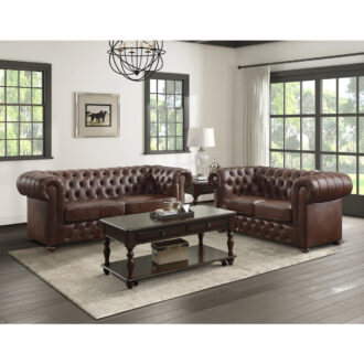 With a look that would be at home in the poshest of lounges, the Tiverton’s traditional design and classic accenting will be a grand addition to your classically styled living room. The Chesterfield-style sofa is offered in brown breathable faux leather upholstery and features the classic accenting of button tufting, defining welt and heavily rolled arms.