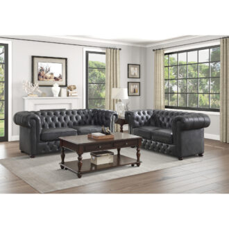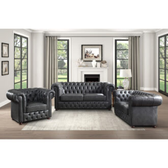 With a look that would be at home in the poshest of lounges, the Tiverton’s traditional design and classic accenting will be a grand addition to your classically styled living room. The Chesterfield-style sofa is offered in gray breathable faux leather upholstery and features the classic accenting of button tufting, defining welt and heavily rolled arms.