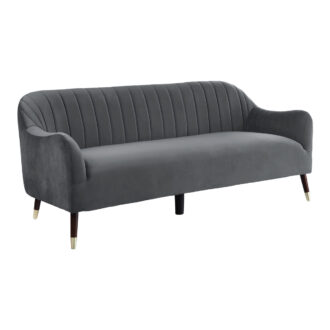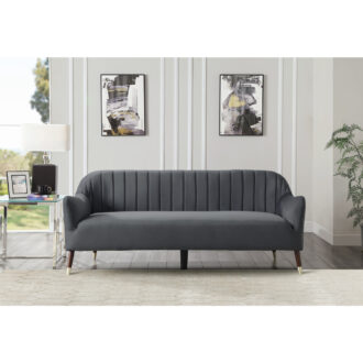 Poised as a sophisticated and functional accent to your home, the Sloane Collection blends effortlessly into the modern aesthetic that permeates your personal style. The gray velvet that covers the sofa provides exquisite touch while the defining channel tufting lends visual contrast. Elegant arms follow the contour of the sofa’s seating profile creating a tailored look perfect for your living space.