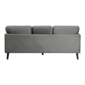 Created for a modern space, the Tolley Collection’s vibrant hue and streamlined profile will perfectly accent your home’s living room. The sofa is supported by dark brown finished wood legs that complement the gray velvet upholstered cover.