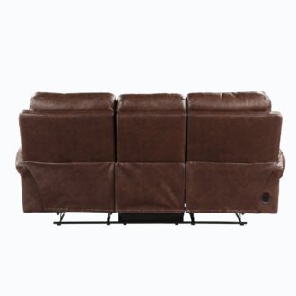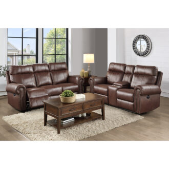 The transitional styling of the Granville Collection pairs classic accent with versatile aesthetics, making the seating group a perfect addition to your home. Offered in brown faux leather upholstery, each piece in the collection features power reclining motion mechanisms for easy transition – going from seated to prone in one smooth move. The sofa features dual reclining ends, plush rolled arms, USB charging port, contoured seats and backs lend to your comfortable seating experience, while nailhead accent lends to the timeless look of the Granville Collection.
