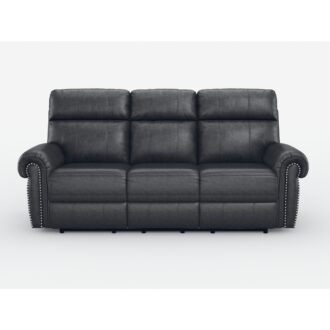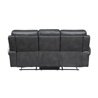 The transitional styling of the Granville Collection pairs classic accent with versatile aesthetics, making the seating group a perfect addition to your home. Offered in gray faux leather fabric, the sofa features dual manual reclining motion mechanisms for easy transition – going from seated to prone with a pull of a side mounted tab. Plush rolled arms, contoured seats and backs lend to your comfortable seating experience, while nailhead accent lends to the timeless look of the Granville Collection.