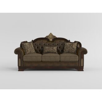 Elegantly designed for the traditional home, the Croydon Collection masterfully blends classic touches to create a seating offering that will be the perfect fit for your living room. Carvings are finished in a dark cherry and feature gold tipping for an added touch of elegance. The show wood frame defines the profile of the sofa while contrast toss pillows complete the look.