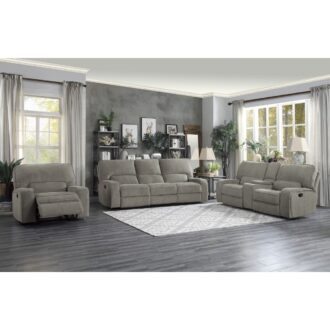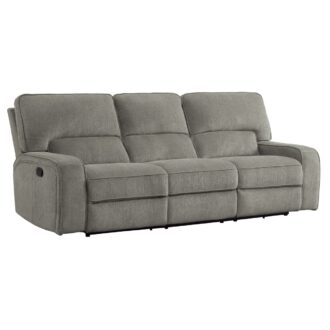 Styled for the modern-transitional home, the Borneo Collection is a comfortable and functional addition to your living room. Mocha fabric with subtle contrast stitching, making it a neutral decorative choice for a number of home environments. The reclining mechanism, once engaged, operates to take you from seated to reclined in an easy motion with personalized head support. The sofa features dual reclining ends, as does the love seat.
