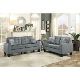 Subtle traditional styling provides a clean and classic look for your home in the Lantana Collection. The sofa allows for the perfect placement within your living room. Gray fabric with contrast pillows that furthers the look and versatility for placement within a number of home decors.