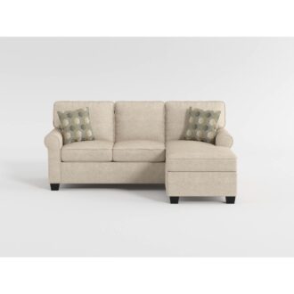Customizable to fit your space, the transitional design of the Clumber Collection is as functional as it is stylish. The chaise is reversible, allowing for placement based on your needs. The sofa chaise is offered in a sand-toned fabric, with contrasting toss pillows, making it a versatile platform for your decorative preferences.